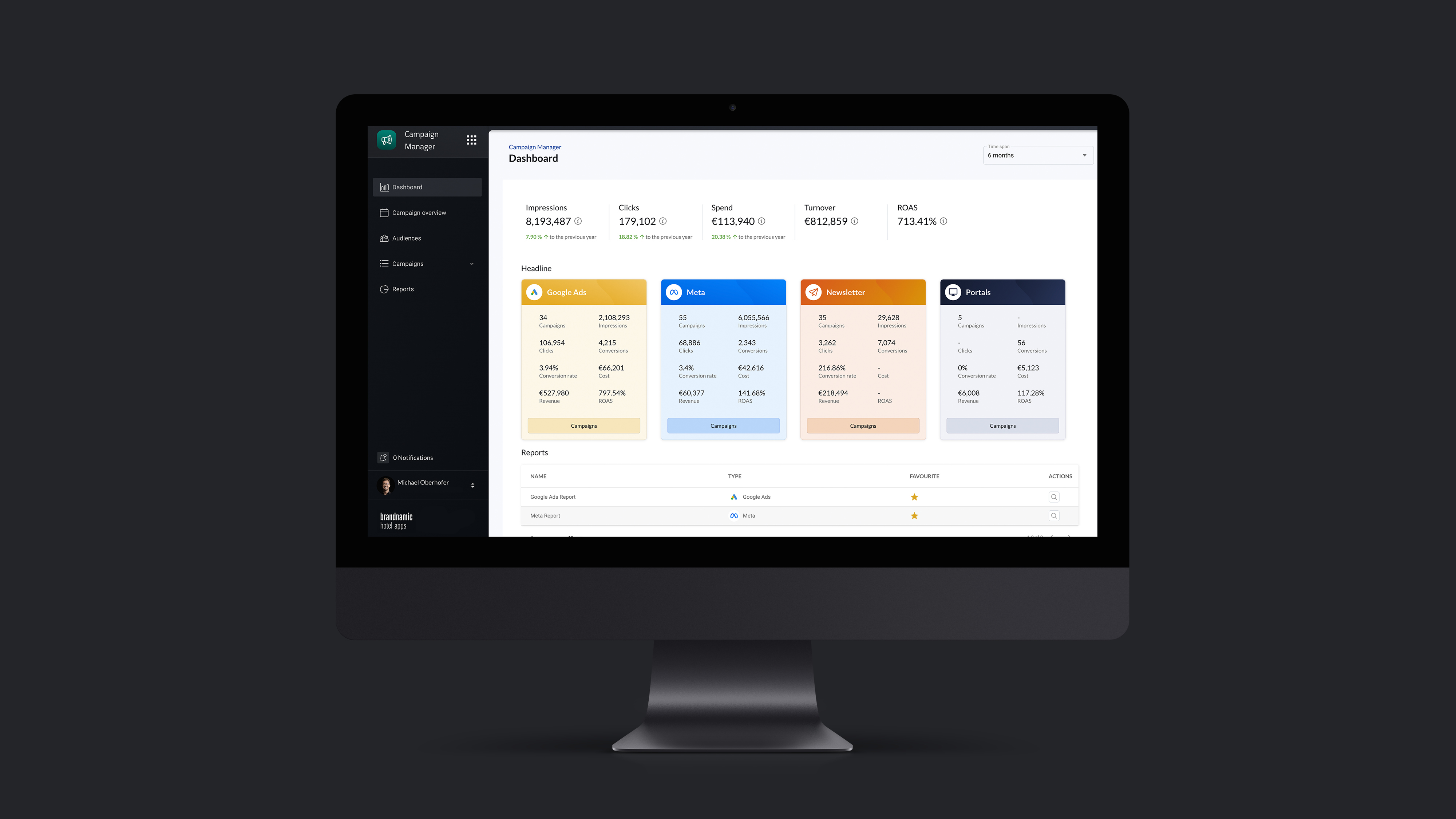 - Der Campaign Manager in den Brandnamic Hotel Apps unterstützt Sie dabei, das Maximum aus Ihrem Ad-Budget herauszuholen und Ihre Ad-Kampagnen so auf ein neues Erfolgslevel zu heben.
