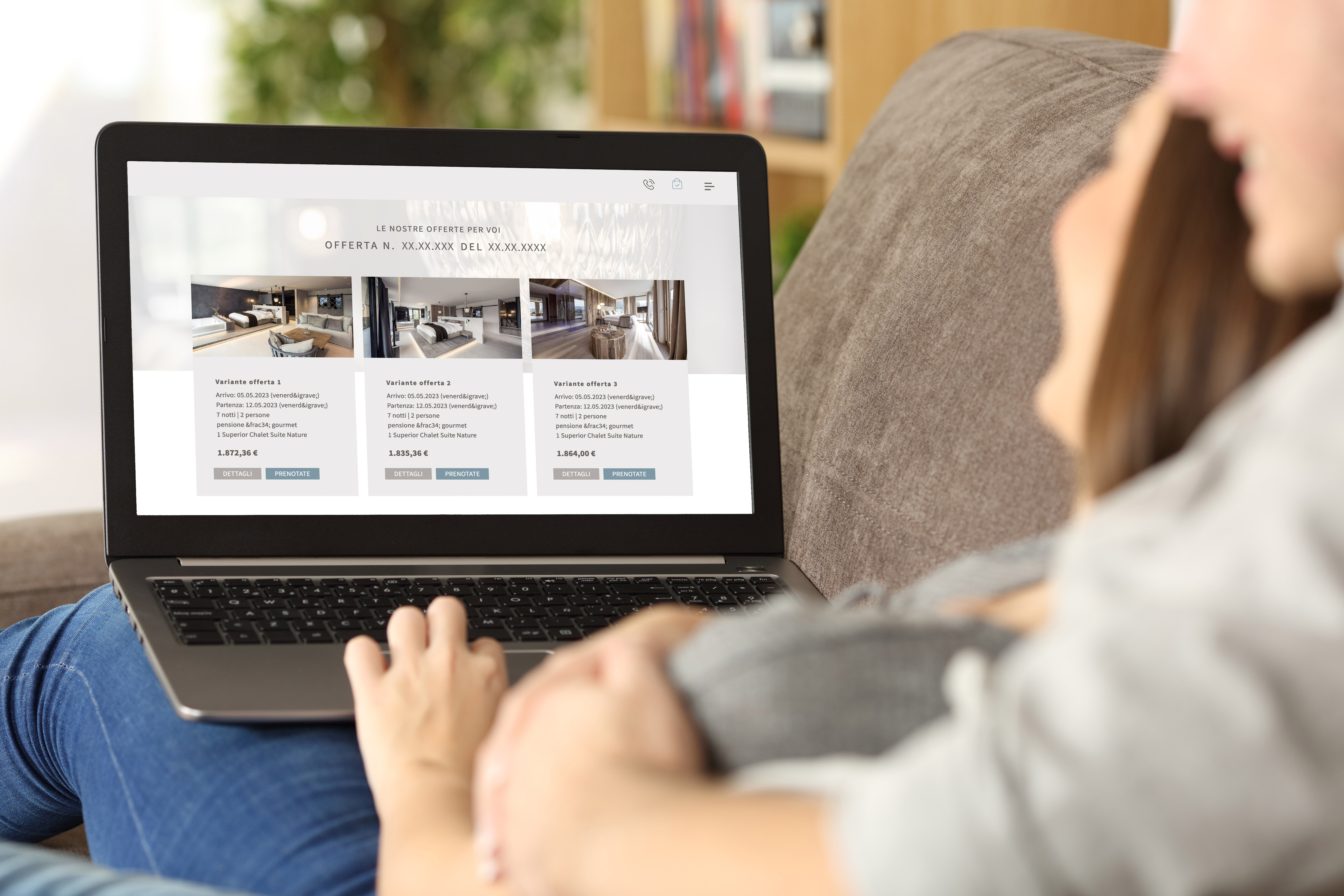 La coppia sa già dove andare: “In un elegante hotel in Alto Adige, di cui ci ha parlato tanto nostra figlia”, dice la signora Rossi. La coppia invia una richiesta per una vacanza. “È meglio fare una richiesta per due settimane diverse nello stesso momento, tanto noi siamo flessibili, e magari inserire una camera in più per nostra figlia così le facciamo una sorpresa!”, suggerisce la signora Rossi al marito.
